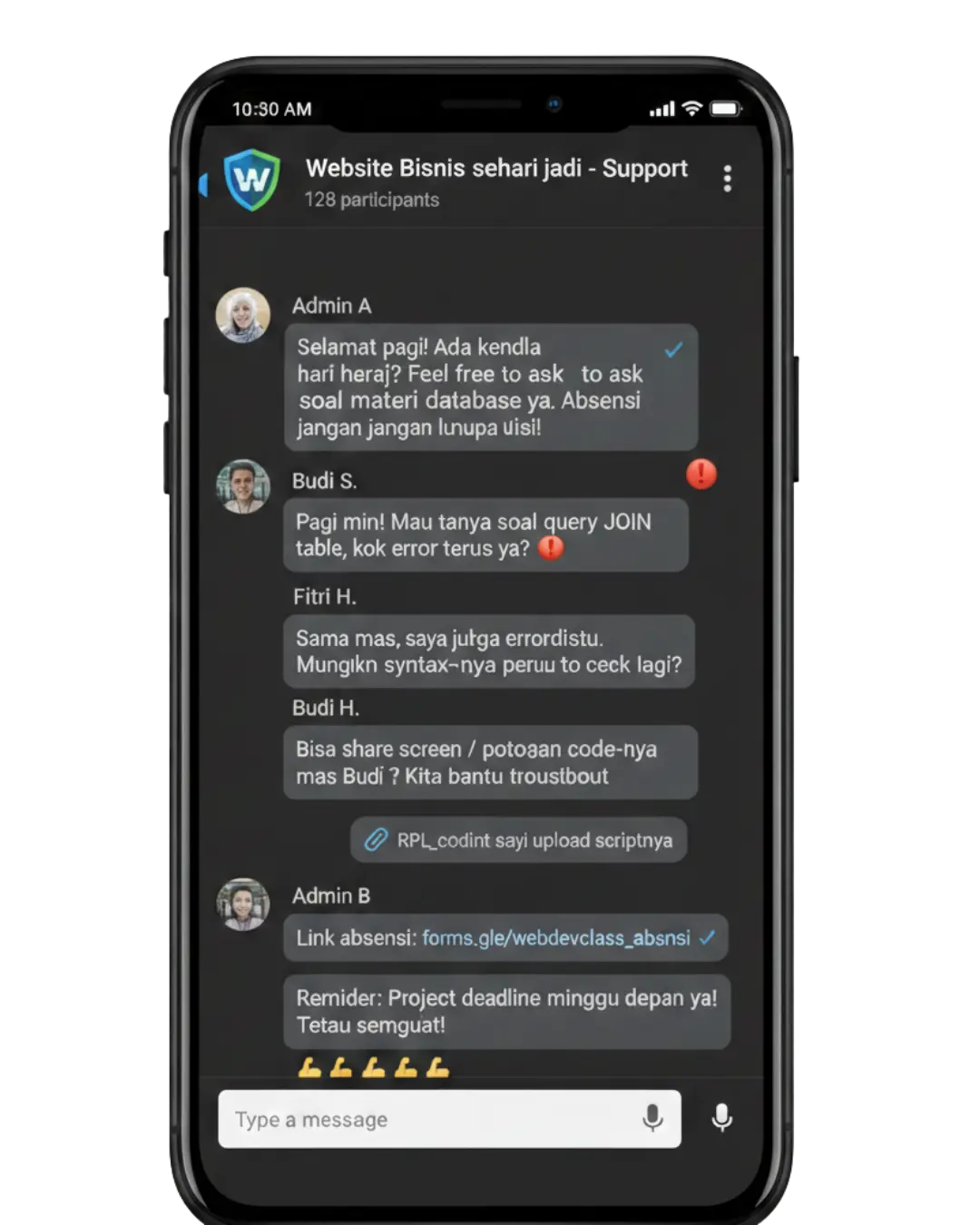 Jika dalam 7 hari Website Anda masih belum online silahkan ajukan permintaan bimbingan , selain itu tersedia grup tanya jawab sehingga Anda tidak perlu kawathir jika ada kesulitan.
